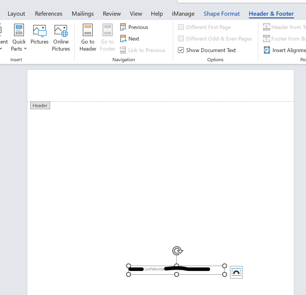 While tenant-level settings define the default behavior, users can manage watermarks at the individual file level. For example, within a document clicking on the Header & Footer option. Changing layout Watermark